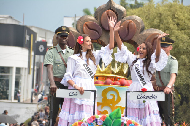 Las representantes de igual número de países recorrieron la ciudad en carrozas diseñadas por Paola Rodríguez, artista y escultora del Carnaval de Negros y Blancos, y pionera del Taller Artístico y creativo Arlexor junto con su compañero Arlex Ortega Montenegro.