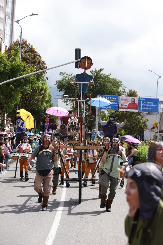 Ciudad Paraguas, bajo la lluvia todos somos iguales fue la propuesta de la corporación La pepa del Mamoncillo, de Bogotá, un colectivo de actores, músicos y artistas expertos en teatro y títeres.