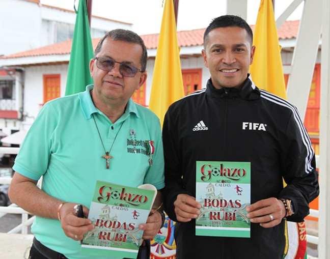 2025-09-26 En Neira (Caldas) se realizó la celebración de los 40 años de distribución de la revista Golazo. Orlando Aguirre, Mariana Aguirre, Luis Hernán Agudelo y Diego Fernando Arias. Orlando Aguirre, Mariana Aguirre, Luis Hernán Agudelo y Diego Fernando Arias. Camilo Prada, Luz Adriana Giraldo, Mariano Bermúdez, Jhon Freddy Tobón y Felipe Herrera. Camilo Prada, Luz Adriana Giraldo, Mariano Bermúdez, Jhon Freddy Tobón y Felipe Herrera. Jhon Freddy Tobón Jaramillo y Jhon Alejandro Gallego Arango, árbitro FIFA. Jhon Freddy Tobón Jaramillo y Jhon Alejandro Gallego Arango, árbitro FIFA. Previous Next Autor lapatria.com