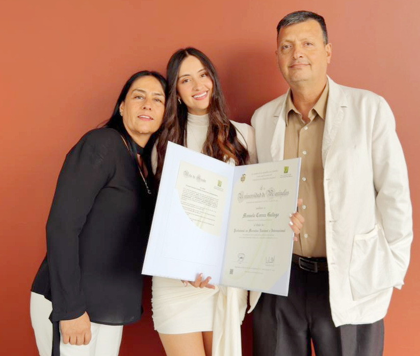 Foto | Lector | LA PATRIA Manuela Correa Gallego se graduó como profesional en Mercadeo Nacional e Internacional de la Universidad de Manizales. En la imagen, en compañía de sus padres, Consuelo Gallego y Juan Pablo Correa.