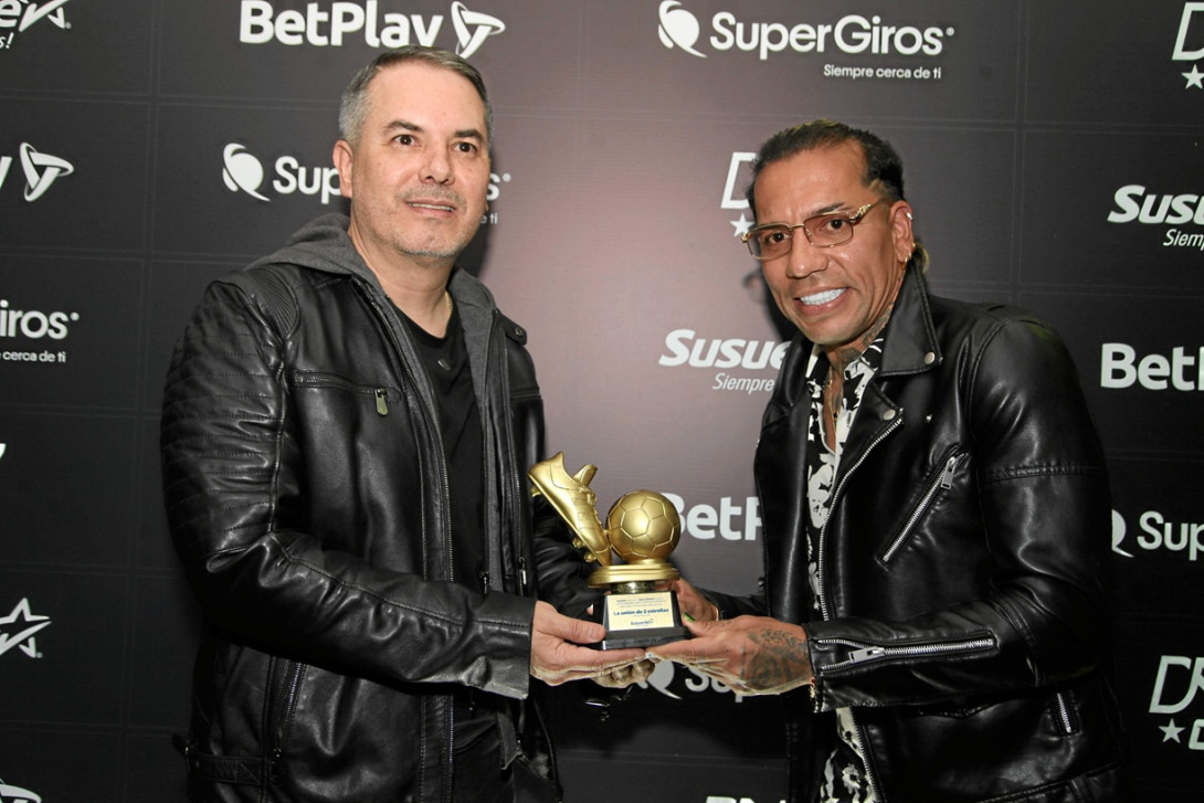 José Julián Hurtado, gerente de Susuerte, entrega reconocimiento a Dayro Moreno.