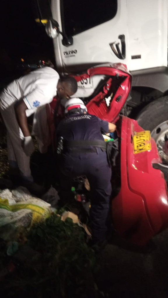 Al lugar arribaron también la Concesión Pacífico Tres y la Policía de las zonas aledañas. Sin embargo, la escena era triste, pues el vehículo pequeño quedó aplastado y sus tres ocupantes, dos hombres y una mujer, perecieron en el sitio. Adelante iba una pareja y atrás su hijo. Luego arribaron los encargados de las inspecciones técnicas y la vía estuvo cerrada hasta tarde, cuando los cuerpos pudieron ser trasladados a Manizales para la necropsia.