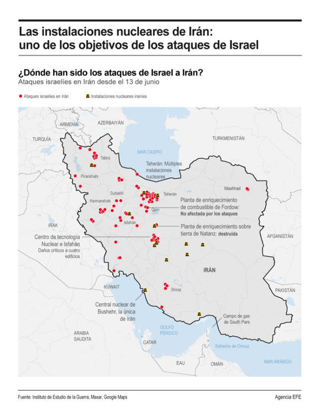 Estas aeronaves lanzaron más de una docena de bombas antibúnker de 13.600 kilos sobre dos instalaciones nucleares clave: Fordó y Natanz. Además, Estados Unidos disparó misiles Tomahawk desde un submarino contra Isfahán.