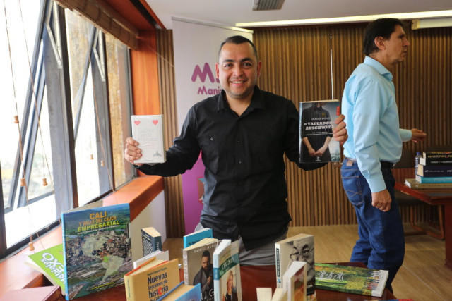 Diego Fernando Giraldo, propietario de la librería La Eneida, no ocultó su felicidad por recibir nuevos libros.
