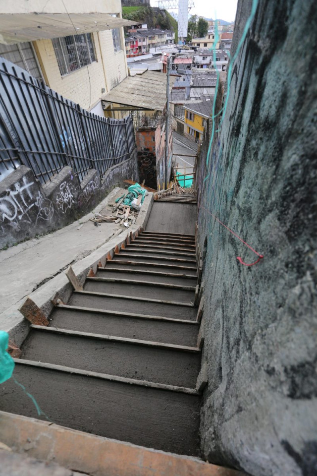 Así se ve la parte baja de los trabajos que están haciendo en las escaleras.