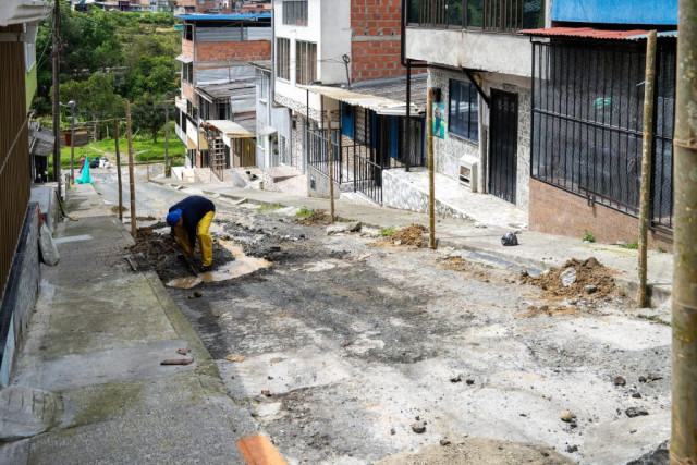 Paralelamente, en el mismo corredor vial, entre la calle 48D1 y la carrera 3D, se ejecuta la reposición del pavimento en concreto sobre 630 metros cuadrados.