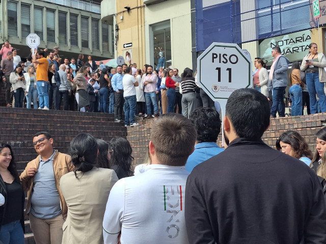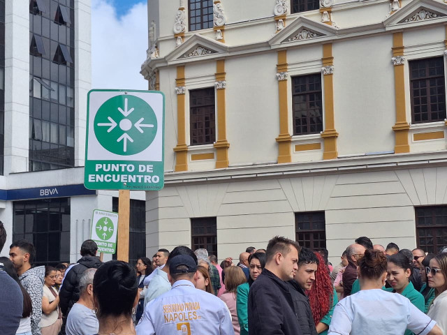 Los empleados que laboran en entidades ubicadas alrededor de la Plaza de Bolívar de Manizales reaccionaron al sonido de las sirenas. A las 9:00 de la mañana de este miércoles (22 de octubre) el simulacro nacional de gestión de riesgo los hizo evacuar sus oficinas.