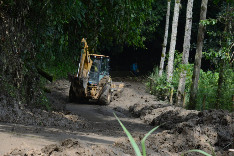 Maquinaria de la Gobernación de Caldas removía la tierra que bloqueó la vía San Peregrino-El Algarrobo.