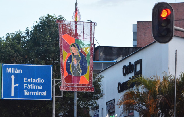 La Virgen María, el estadio Palogrande, la Torre de Chipre y el volcán Nevado del Ruiz toman por sorpresa a ciudadanos en las avenidas Santander y Centenario de Manizales.