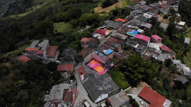 Con la calma que le brindó el lugar, el artista y sus dos compañeros remodelaron la cancha de la Cuchilla del Salado y la dejaron con unos colores llamativos para el disfrute de propios y visitantes.