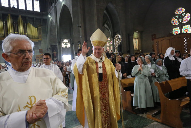Los sacerdotes, luciendo albas y estolas blancas, ingresaron a la Catedral Metropolitana de Manizales.