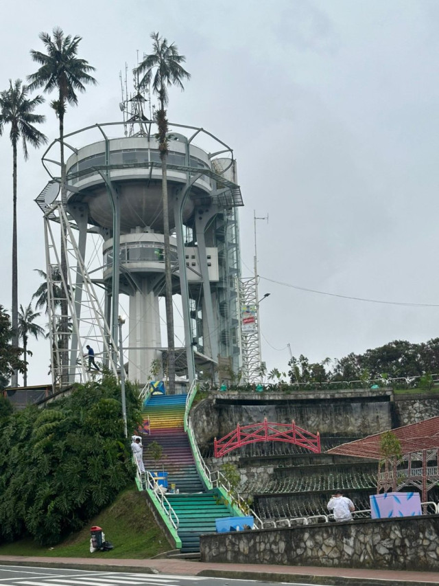 Fotos | Margaret Sánchez | LA PATRIA Tres artistas urbanos de Manizales pintan las escaleras de la Torre Panorámica de Chipre.