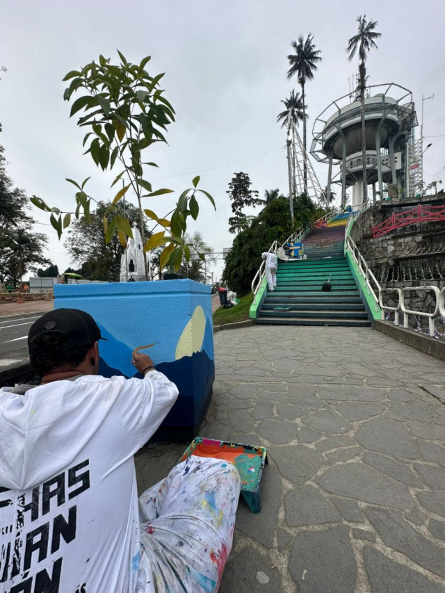 Mientras los adornos de Navidad se mezclan entre las nuevas adecuaciones en este sector turístico de la ciudad, hay tres artistas que se encargan de revivir el color de 92 escalones y 9 materos de la Torre Panorámica que el sol y el agua han ido destiñendo.