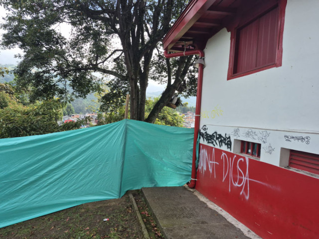 Foto | Freddy Arango | LA PATRIA Con una lona verde fue cercado el parque del barrio La Enea de Manizales.