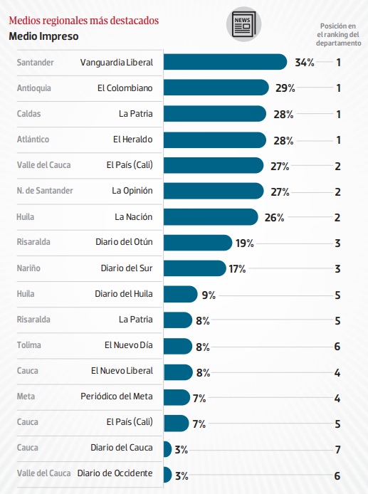 De igual forma se ubicó en el octavo puesto entre los medios impresos más consultados para mantenerse informado en Colombia, con un registro del 2% en el territorio nacional.