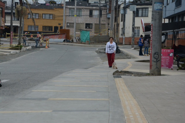 Los últimos pasos son más amables con peatones, cerca de la intersección de las calles 46c y 47 y la carrera 21. En ese tramo, el bulevar en construcción ya tiene forma y espacios ampliados para los caminantes.
