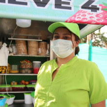 Obleas, helados y bebidas conviven con aplanadoras, taladros, excavadoras y calor. Los alimentos dan señales de la construcción: el pulso de clientes tiembla mientras se llevan la comida a la boca.