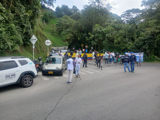 La protesta se ubica en la entrada a La Esmeralda, en la vía Manizales-Neira.