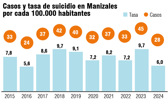 En el 2024 Manizales registró una de las tasas más bajas (6,0) en la última década.