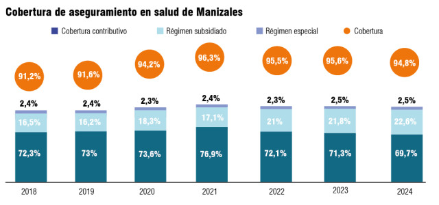 Manizales registró una cobertura en salud del 94,8% en el 2024. Sin embargo, está por debajo del promedio nacional (100%).