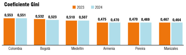 Manizales se ubica por debajo del promedio nacional y como la segunda ciudad con el Gini más bajo.