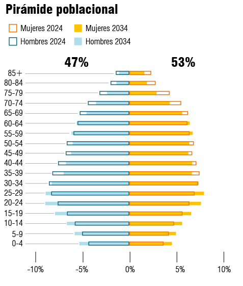 El hilo conductor de la conversación fue la demarcación demográfica, pues la población mayor de 60 años en el 2024 de ubicó en el 21% y para el 2034 se proyecta que esté en un 25%.