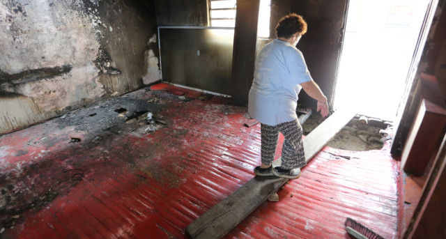 Afuera de su vivienda, un mueble es de lo poco que se pudo rescatar, pero tampoco sirve. Al dirigirse a los bajos de su casa, la puerta está sostenida con un candado para que nadie ingrese. Adentro el lugar es negro debido a la acumulación de hollín, que es un residuo de la combustión incompleta de materiales como madera, plásticos, y otros compuestos orgánicos.