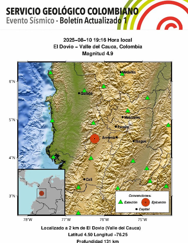 El servicio Geológico Colombiano informó que su epicentro fue en El Dovio, Valle del Cauca.