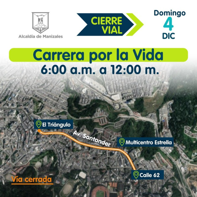 La Gobernación de Caldas y la Alcaldía de Manizales realizarán actividades este fin de semana en la ciudad que generarán cierres viales.