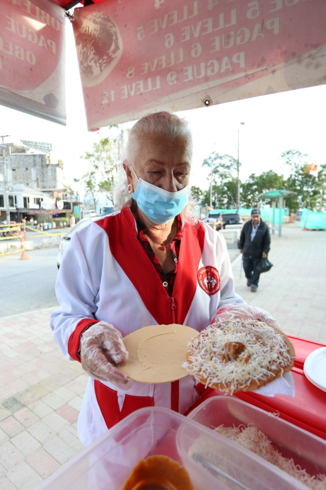 Con una oblea en la mano, una espátula con arequipe en la otra y la preocupación en mente, la comerciante expresa: "Le pido al alcalde que no me quite el lugar de trabajo porque es mi sustento. Yo trabajé en una empresa y logré pensionarme porque pagué particularmente. En el 2009 me pensioné".