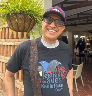 Empecé a interesarme por las aves hace 12 años en el Congreso de Aviturismo, aquí en Manizales. He venido en varias oportunidades y uno siempre se lleva cosas importantes. Además de las aves, la gente es encantadora.