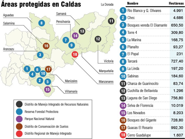 Caldas solo tiene el 5,2% de su territorio de áreas protegidas, unas 38 mil hectáreas, casi el mismo tamaño de Riosucio.