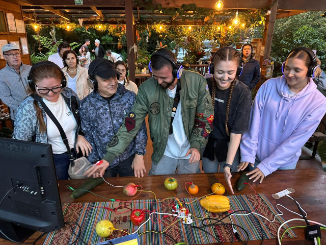 La planta es nuestra pianista, es la que va a estar tocando las notas. Yo hago el trabajo de ingeniero de sonido. Es una cocreación de humano y planta”, les explicó el músico argentino a los 20 asistentes.