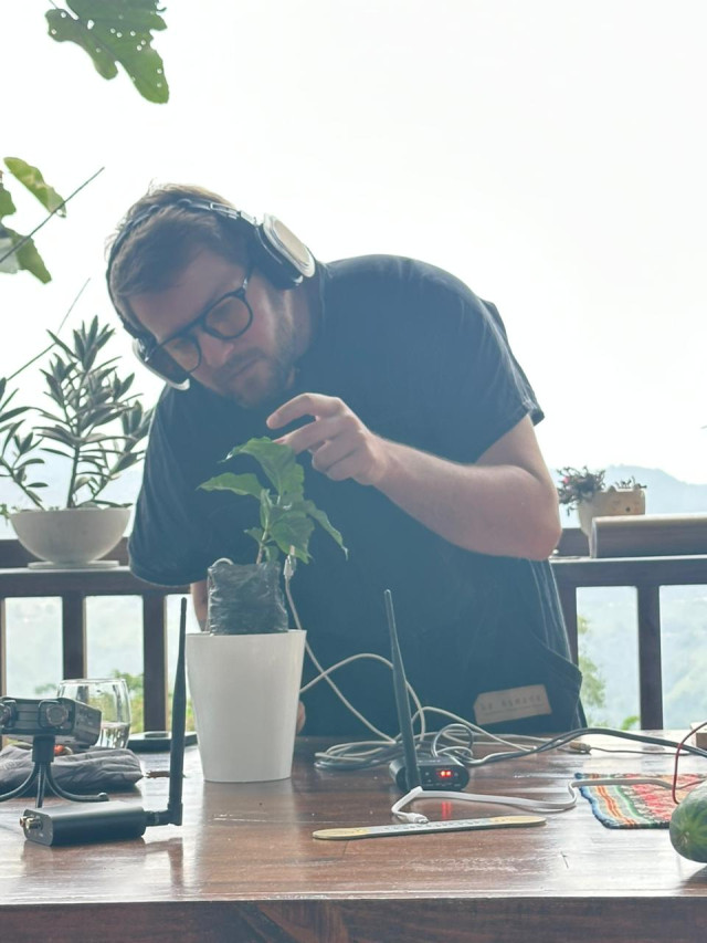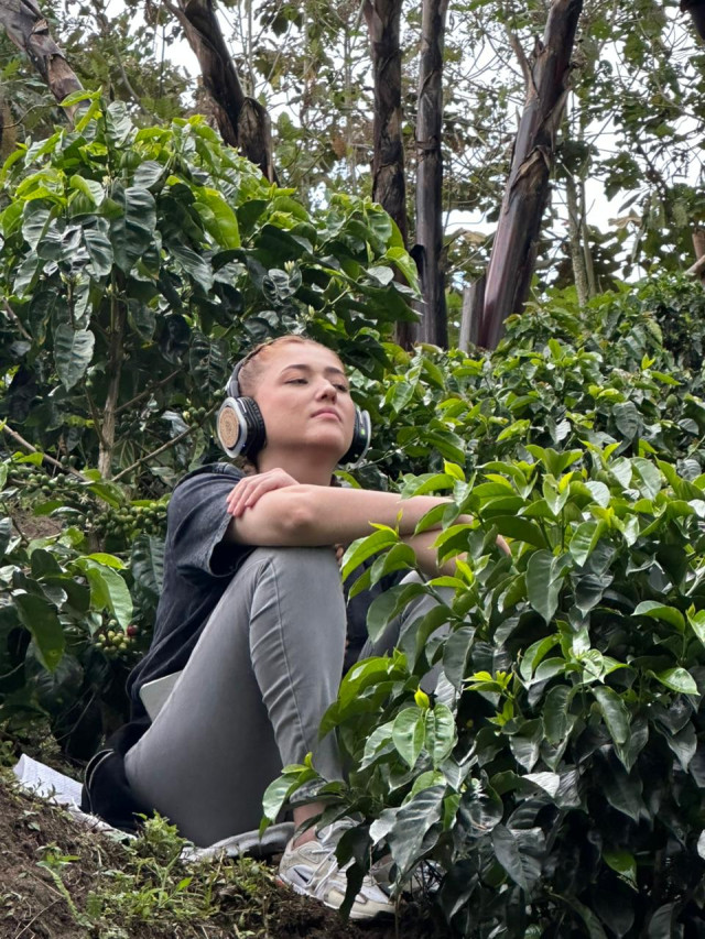 Hila ubicó esta vez los biosensores en una planta de café más grande y mezcló los pulsos eléctricos con los sonidos que grabaron previamente. Fue un concierto a cielo abierto, entre el cafetal, árboles de siete cueros y guaduales.