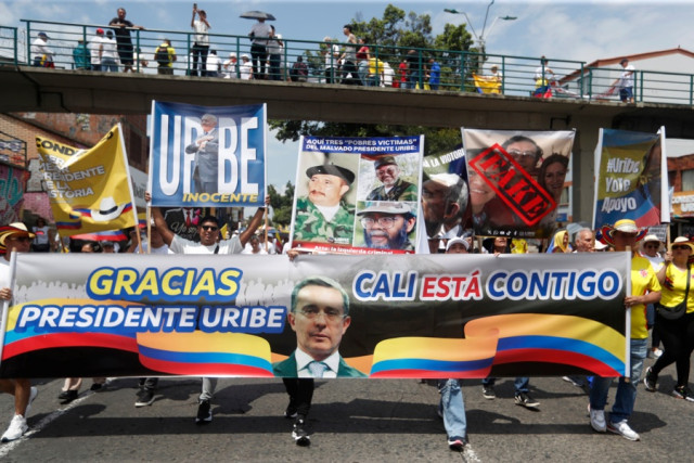 El expresidente colombiano Álvaro Uribe (2002-2010) hizo este jueves (7 de agosto) un llamamiento a sus seguidores, que salieron a las calles a expresarle su apoyo tras ser condenado en primera instancia a 12 años de cárcel, para que elijan el año próximo un "gobierno de transición" que garantice la estabilidad democrática del país.