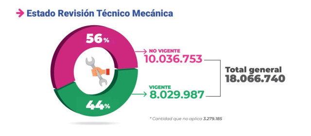 De igual manera, la Revisión Técnico Mecánica (RTM), mostró un panorama del 56% de evasión, lo que representó 10.036.753 de vehículos sin su certificado técnico al día.