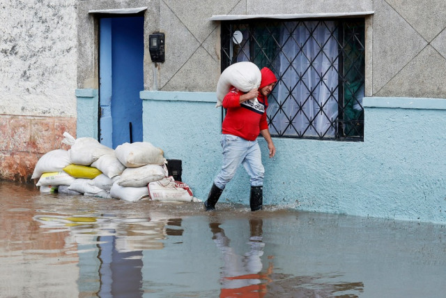"Nosotros creíamos que se nos inundaba todo, colapsaron las tuberías de la casa y se anegó primero el patio, luego la sala y después la cocina", dice el hombre, a quien el agua ya le llega hasta las rodillas.