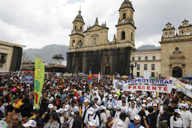 Miles de personas reunidas en la Plaza de Bolívar de Bogotá.