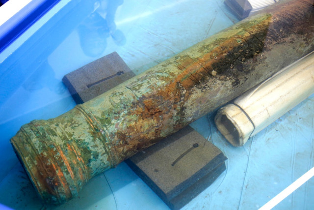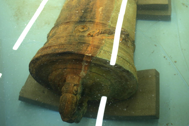 Foto | EFE | LA PATRIA Fotografía de un cañón que la Armada Nacional de Colombia recuperó del naufragio del galeón San José que yace en el fondo marino en un punto cercano a Cartagena de Indias.