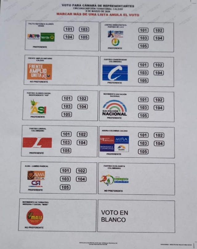 Orden en el tarjetón de la Cámara de Representantes por Caldas