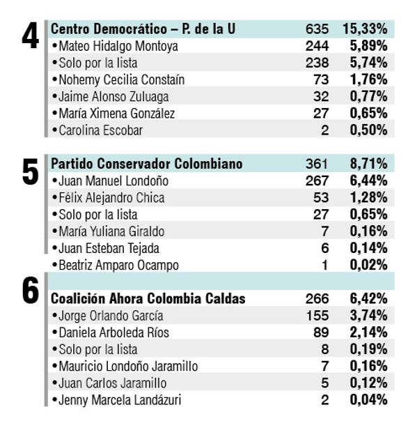 Partidos más votados de Caldas en el Bajo Occidente