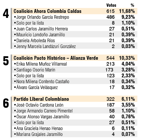 Partidos más votados en el Alto Oriente de Caldas