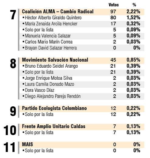 En la cima, siete votos separan al lizcanismo, acobijado por Alianza Social Independiente (ASI), de la coalición Centro Democrático - Partido de la U.