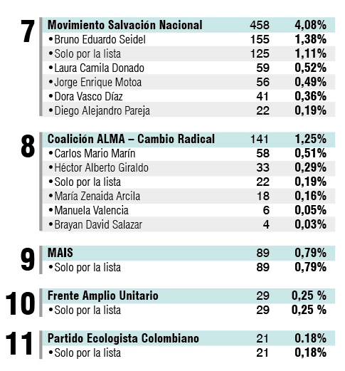 Además, hubo una sorpresa dentro de la lista de los rojos. Contrario a la tendencia del departamento, Óscar Alonso Vargas obtuvo más votos que José Octavio Cardona.
