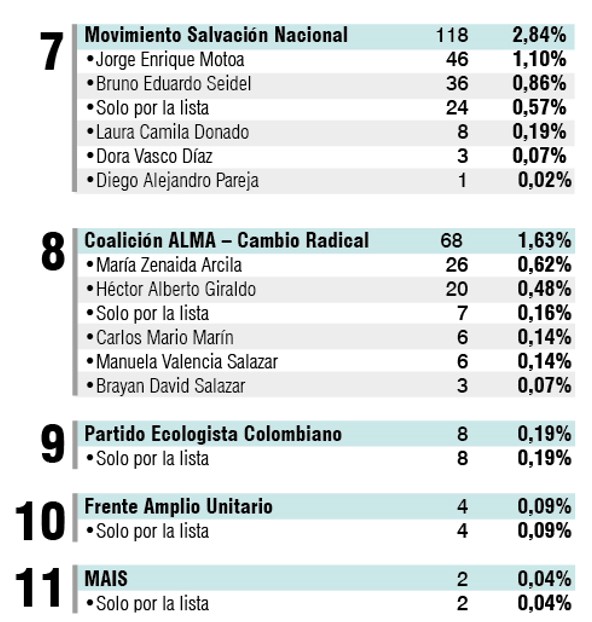 - Pacto Histórico-Alianza Verde: 3979 votos