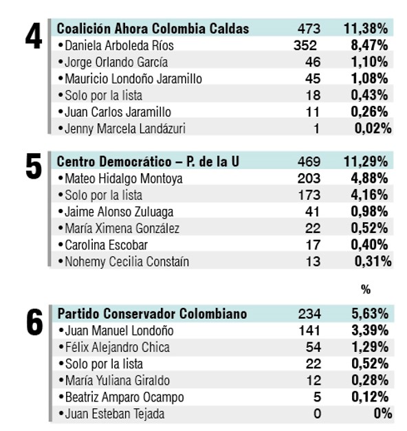 Candidatos más votados en Risaralda, Caldas