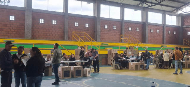 Con tranquilidad y normalidad continúa el proceso electoral en Aguadas, el Coliseo Cubierto de Cambumbia es uno de los puestos de votación en el municipio. Con un poco de bruma, este pueblo patrimonio de Colombia también se vinculó a esta jornada democrática nacional.