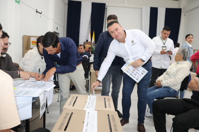 El alcalde de Manizales, Jorge Eduardo Rojas, ya ejerció su su derecho al voto en la mesa 10 de la Universidad Católica de Manizales.