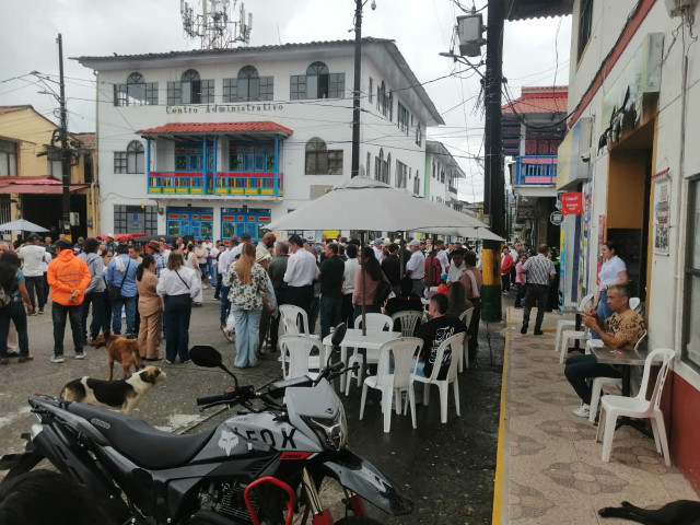 Allí llegó el alcalde Jorge Andrés Arango Tabares, su presencia generó discordia entre algunos ciudadanos y le pidieron que se alejara de la entrada a la institución. El mandatario optó por observar la jornada desde el balcón de la Alcaldía.