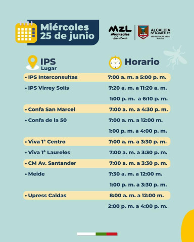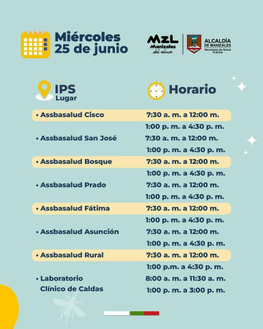 Si aún no se ha vacunado contra la fiebre amarilla, puede hacerlo mañana (25 de junio) en cualquiera de los puntos que acompaña la Secretaría de Salud Pública de Manizales.